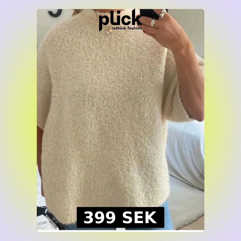 Såå fin beige stickad t-shirt med korta ärmar och mellanhög hals. Oversized med grovstickat mjukt material. 💕