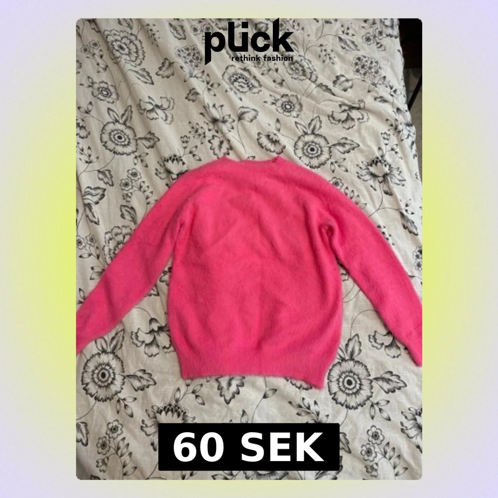 En fluffig och mysig stickad tröja i stark rosa färg. Tröjan har rund halsringning, långa ärmar och ribbstickade muddar vid ärmslut och nederkant. Perfekt för dig som vill ha en färgklick i garderoben.