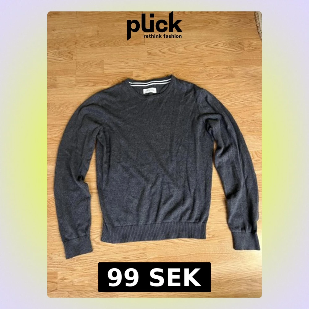 Mörkgrå stickad sweatshirt från Pier One med rund hals och ribbade muddar vid ärmslut och nederkant. Enkel och stilren design som funkar till många olika looks. Materialet är mjukt och skönt, perfekt för kyligare dagar.