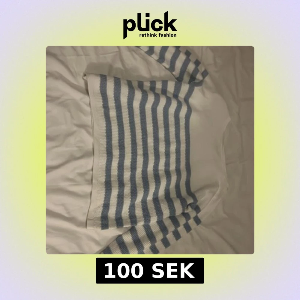 Säljer en vit och ljusblå stickad tröja från Newhouse med horisontella ränder och snygga guldfärgade knappar vid axlarna. Tröjan har rund hals och långa ärmar, perfekt för dig som gillar klassisk och chill stil. Den är i storlek M men är ganska liten