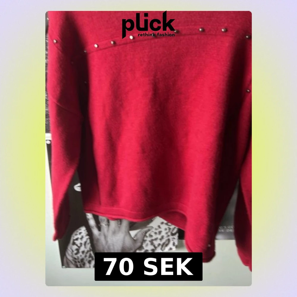 Snygg röd stickad tröja från Mango med silverfärgade nitar längs bröstet och axlarna. Tröjan har rund halsringning och långa ärmar. Perfekt för dig som vill ha en enkel men edgy look.