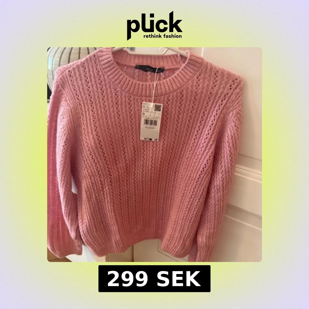 Superfin rosa stickad tröja från MANGO med hålmönster och rund halsringning. Tröjan har långa ärmar och ribbade muddar vid ärmslut och nederkant. Perfekt för lager-på-lager under kyliga dagar.
