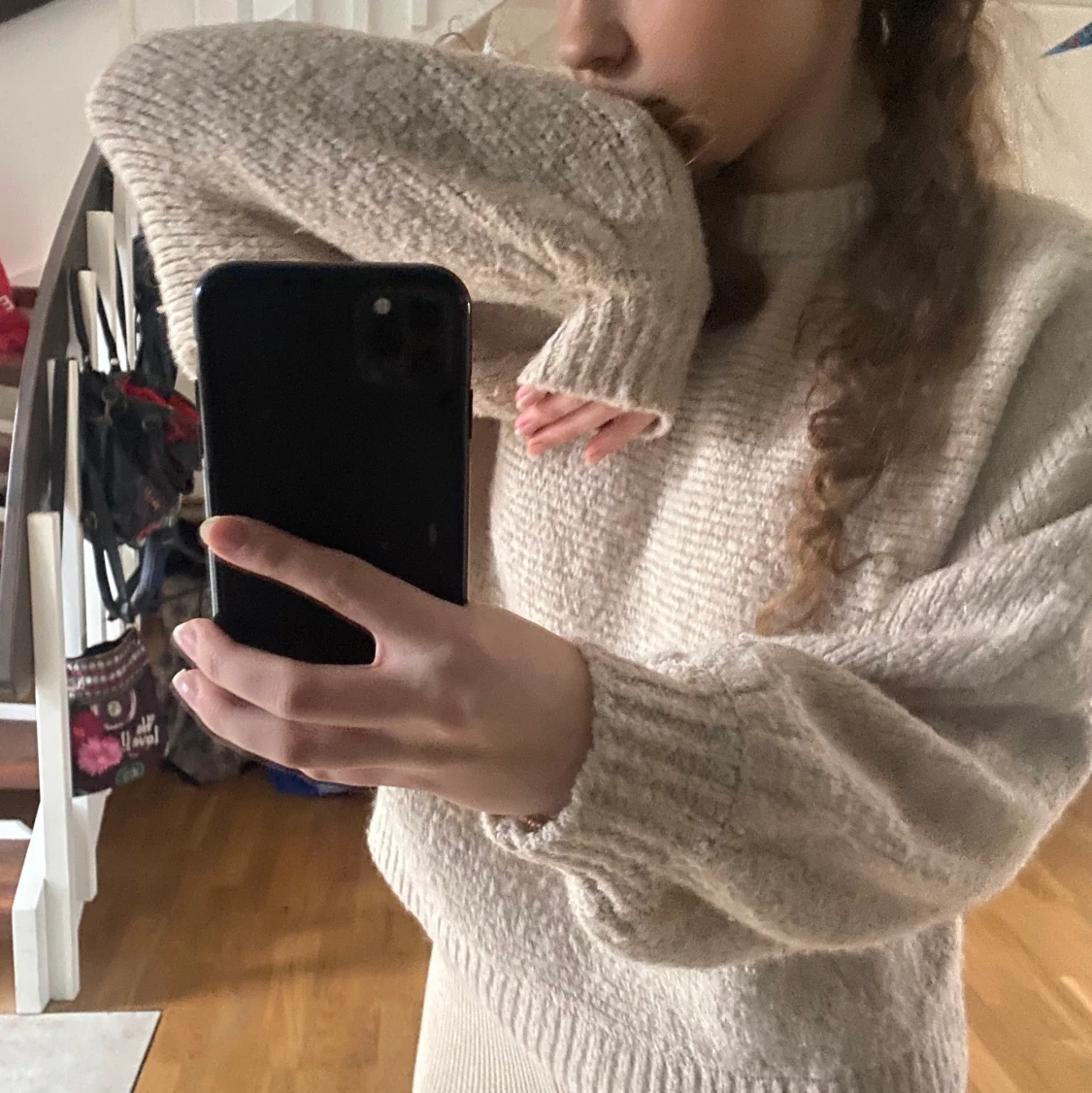 Fin beige stickad tröja, i storlek S. Jättegin över en klänning eller liknande 😍frakt ingår inte!