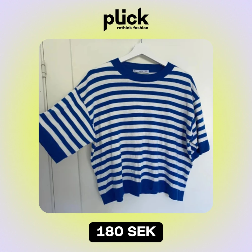 Jättefin randig tröja som är kortärmad från Mango. Passar jättebra till vardagar. Använt den runt 5 gånger, därför är den typ som ny! Den är storlek XL men passar också som L