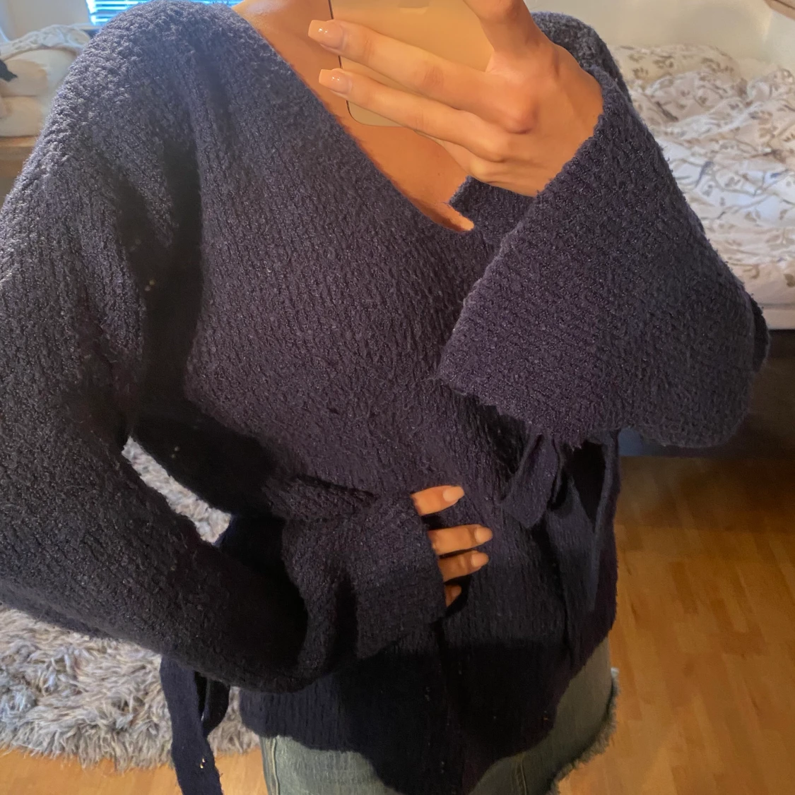 Jättefin stickadtröja från mango med detaljer längst ner vid armarna. Använd 2 ggr. Den är mörkblå storlek s/m