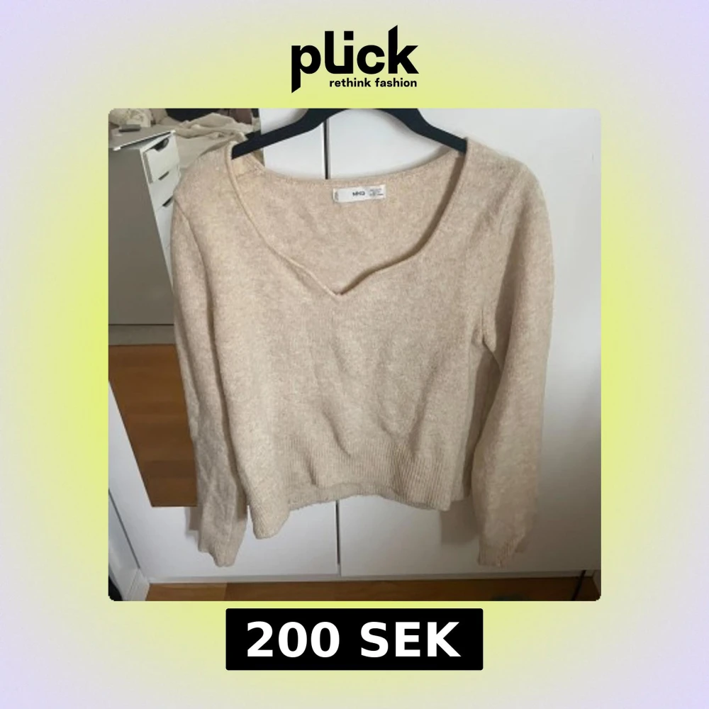 Beige långärmad tröja från Mango med v-ringning. Storlek XL men passar även L och M