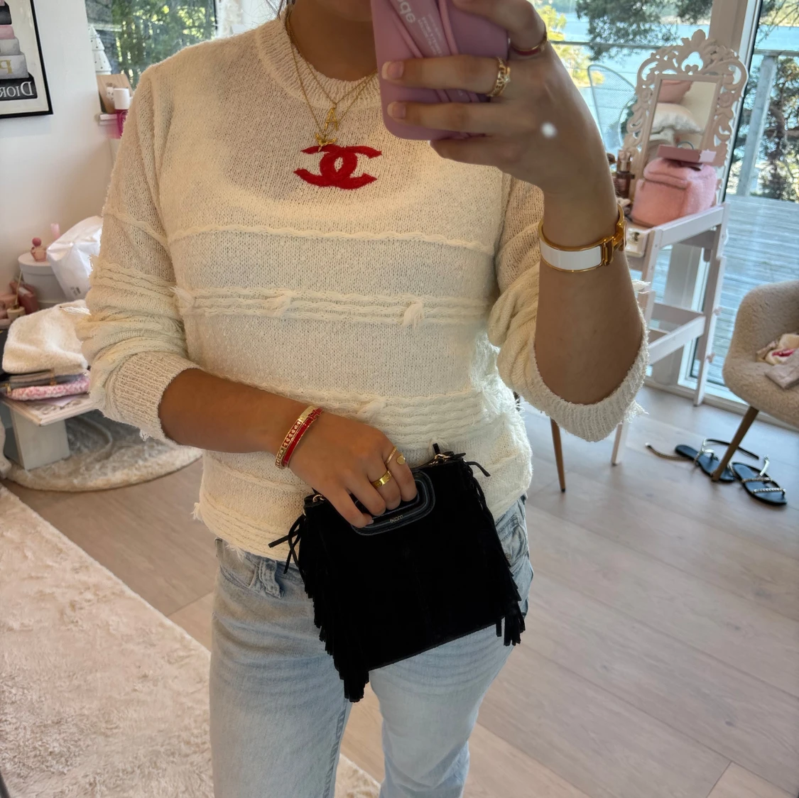 Vit stickad vintage tröja från chaneI !! 💛💛 I storleken M. Tröjan är vintage men jag har själv aldrig andvänt den !! 💓💓