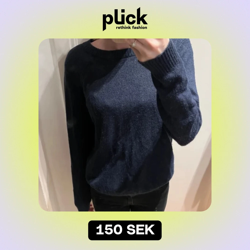 En marinblå stickad tröja som jag säljer på grund av att den inte har kommit till användning.🥰