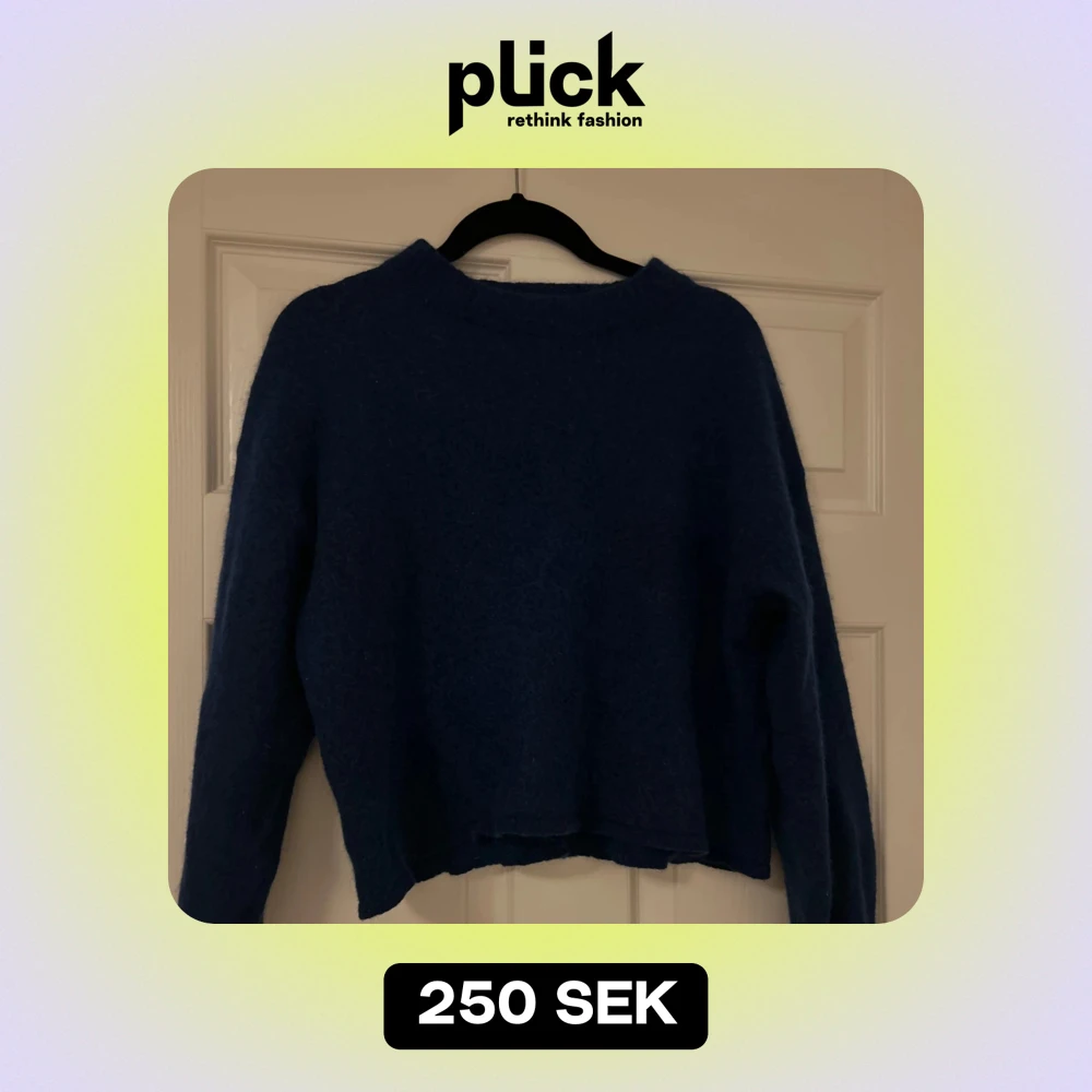Säljer denna en mysig mörkblå stickad tröja med långa ärmar. Den är i en storlek M men skulle säga att den passar bättre med folk som har storlek S eller till och med Xs. Den är väldigt liten i storleken för att utge sig för och vara en storlek M