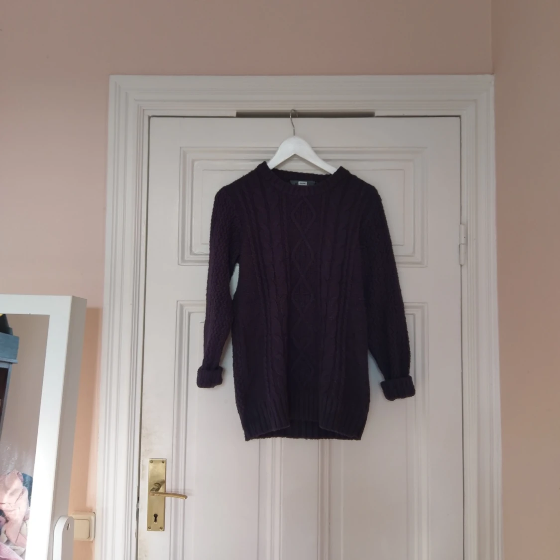 Mörkblå kabelstickad tröja från Bik Bok. Lite noppig men annars i fint skick! Hämtas i Stockholm✨ 90% akryl, 10% nylon