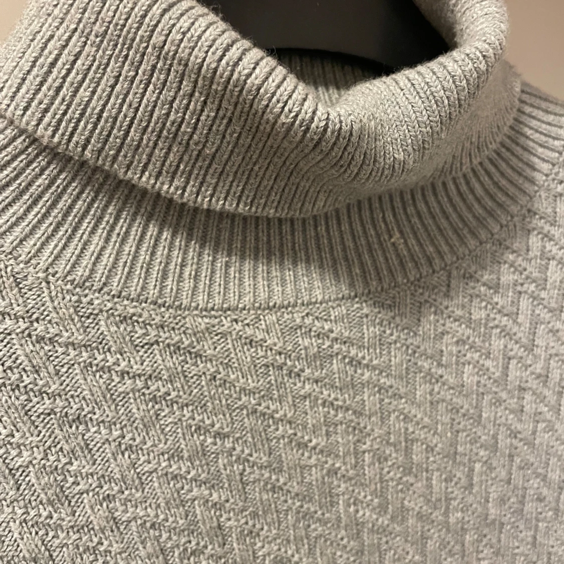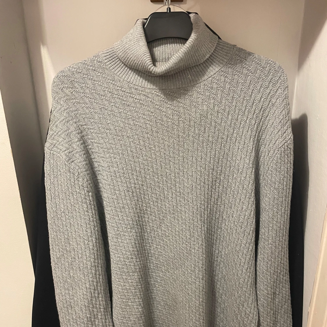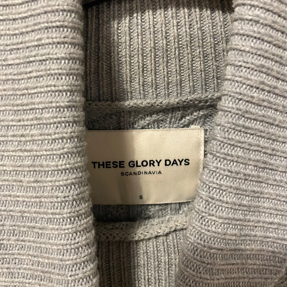 Säljer en snygg och bekväm stickad polotröja från These Glory Days. Den är använd ett fåtal gånger och är perfekt för höst och vinter! Tröjan är bomull i en neutral ljusgrå färg och är i storlek S. Den har ett elegant mönster och mjuk känsla.