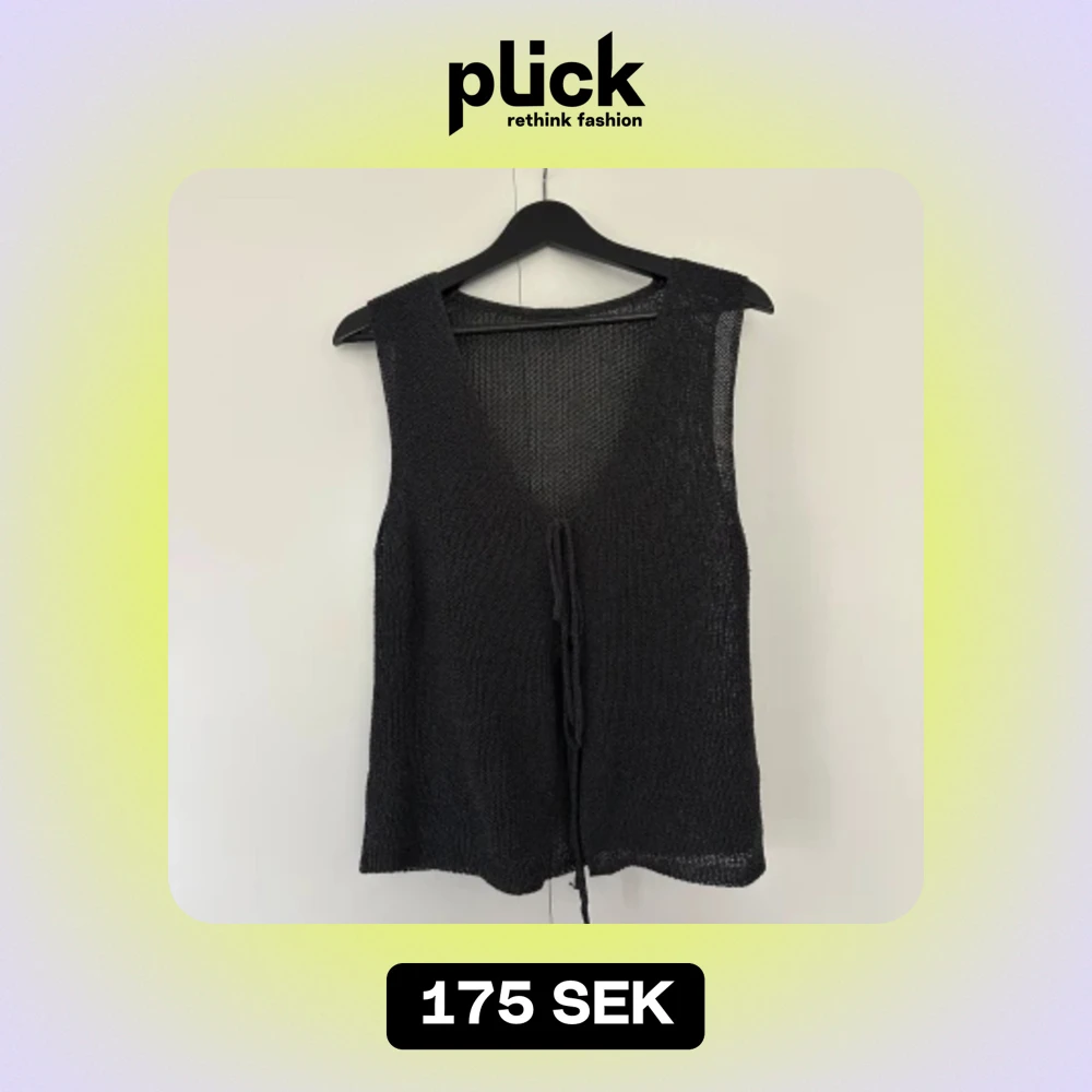 Finstickad väst eller armlös topp från Massimo dutti Storleken är typ som en S! Knytband där fram som man kan ha öppet eller stängt. Köpt för 799 Använd 1 gång köpt för 1 månad sen