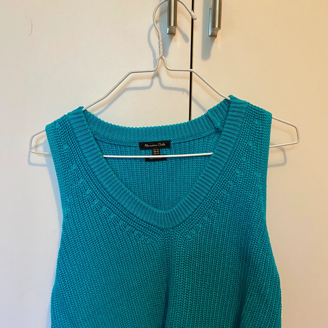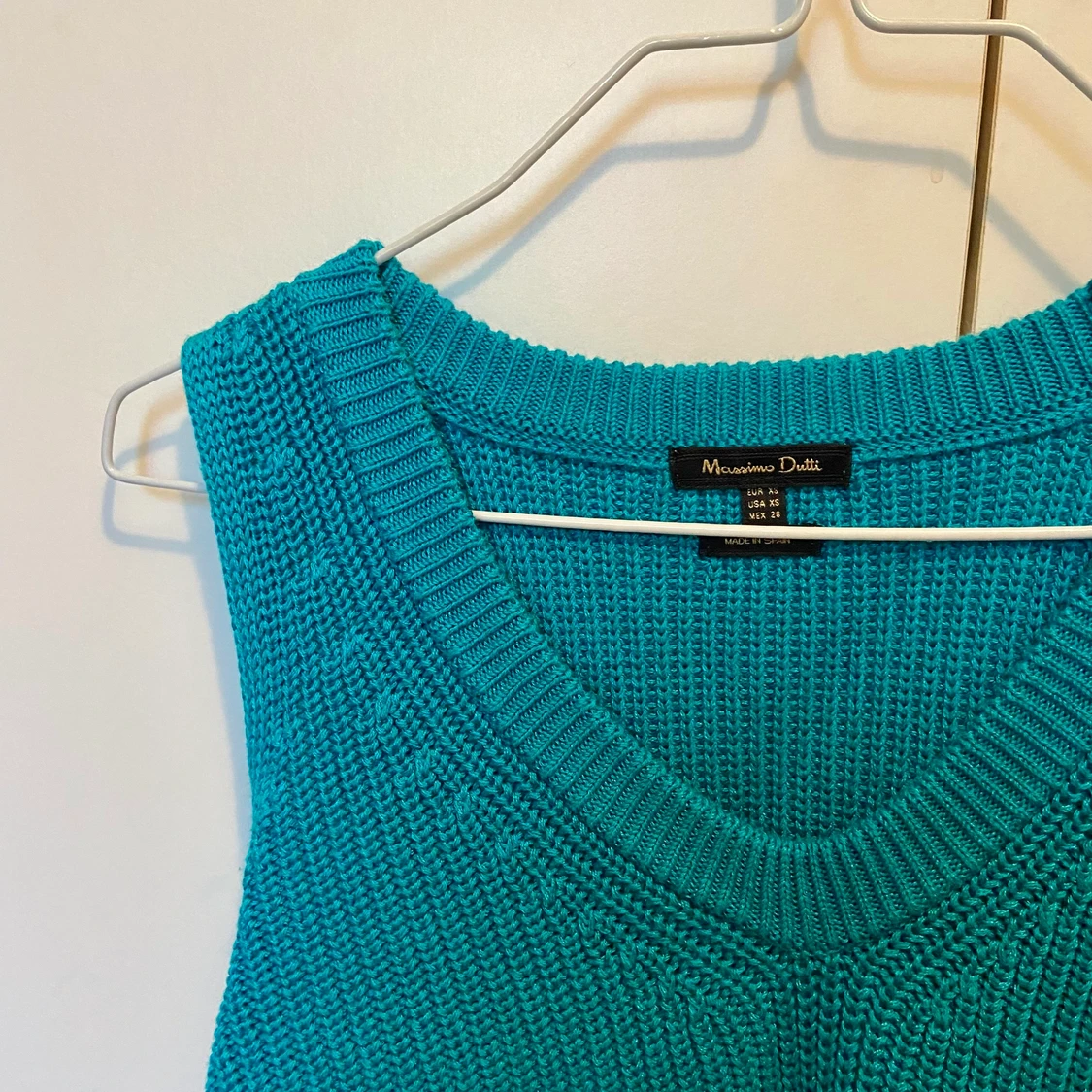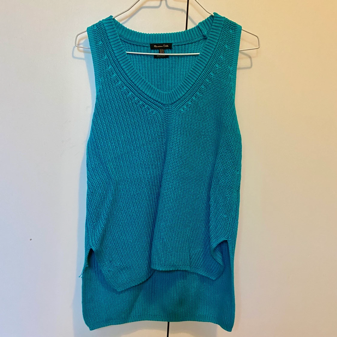 Supersnygg stickad väst från Massimo dutti! Längre till därbak och kan både stylas upp och ner. Passar både XS och S