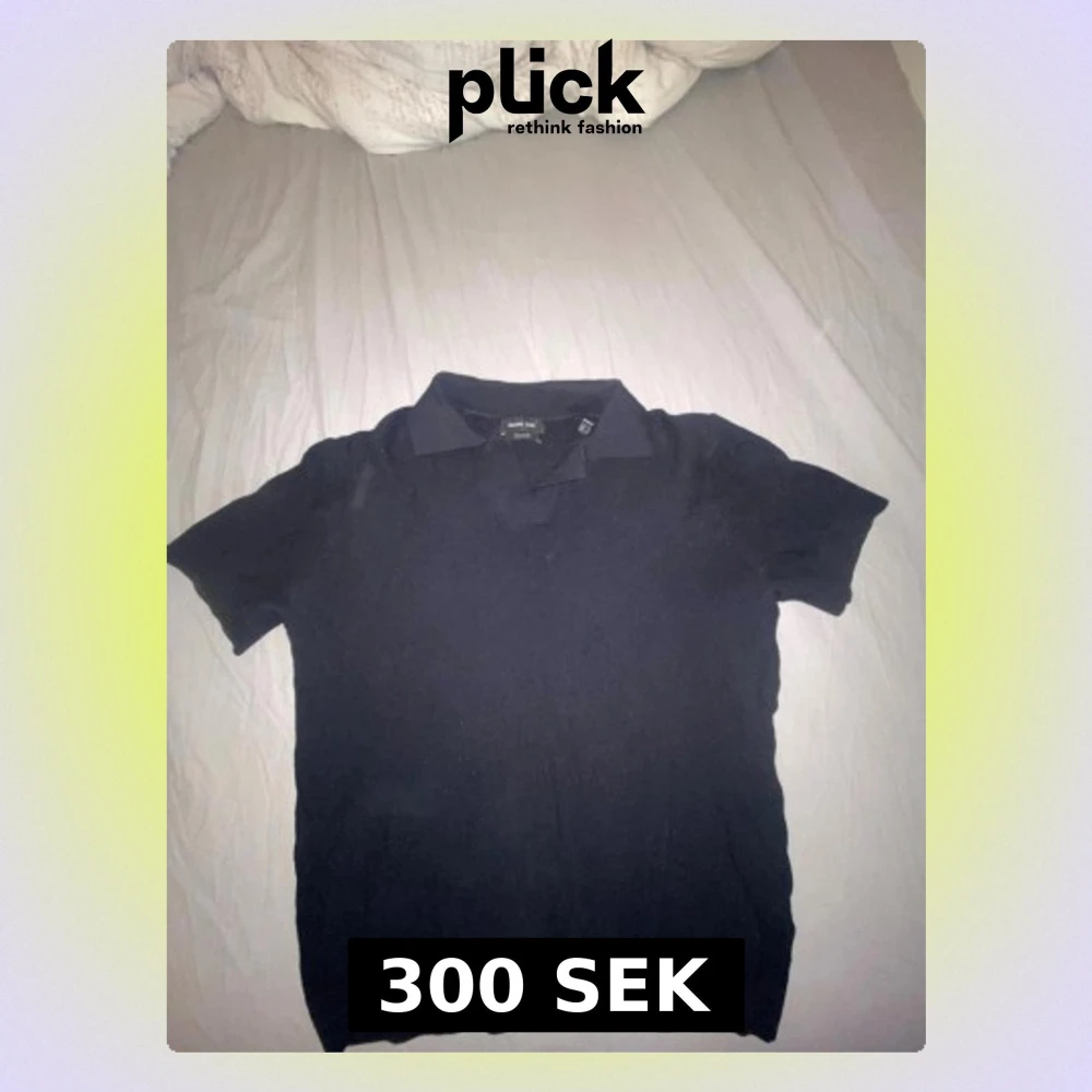 Snygg mörkblå stickad pikétröja med korta ärmar och klassisk krage. Tröjan har en enkel och stilren design som passar till mycket. Är som ny knappt använd. Den är tyvärr för liten för mig. Storlek S. Det är ett fint märke, den kostade 400kr ny