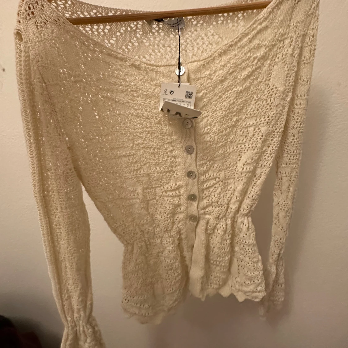 Står strl M på tröjan men S på lappen. Tror att det är en M.