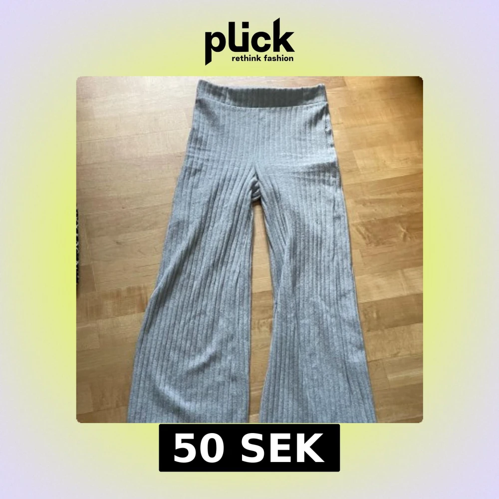 Säljer ett par grå supersköna mjukisbyxor som är i ett ribbat material med hög midja och bootcut i benen. Använda men i fint skick!🤩Minns inte riktigt vart dom är ifrån då lappen är borta , men skulle säga att de passar xs/s☺️