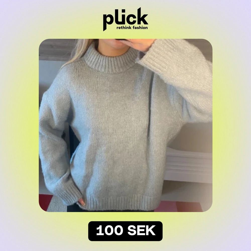 Blå stickad tröja från H&M, den är i lite mohair-liknande material