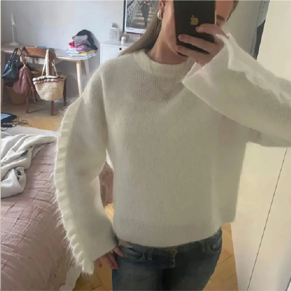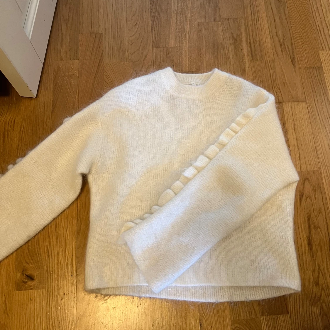 En jättefin stickad tröja från arket i storlek XS. Den har används några gånger. Den har volanger på sidan av armarna!Vid frågor eller funderingar så är det bara att höra av sig 💗