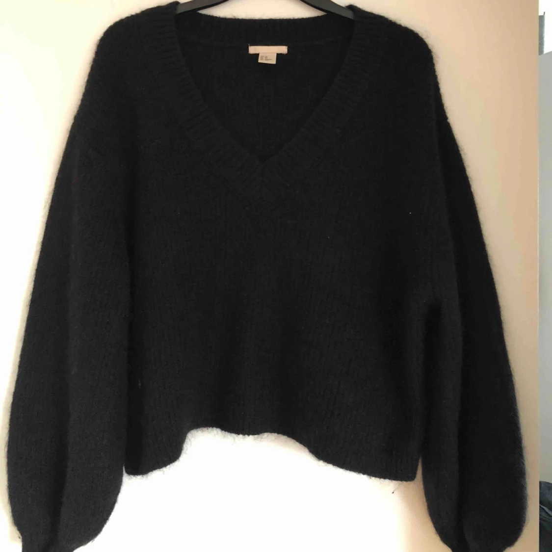 Svart stickad tröja i mohair från H&M trend. Något kortare modellen med ballongärm. Storlek XS men passar XS-M beroende på önskad passform. Frakt tillkommer.