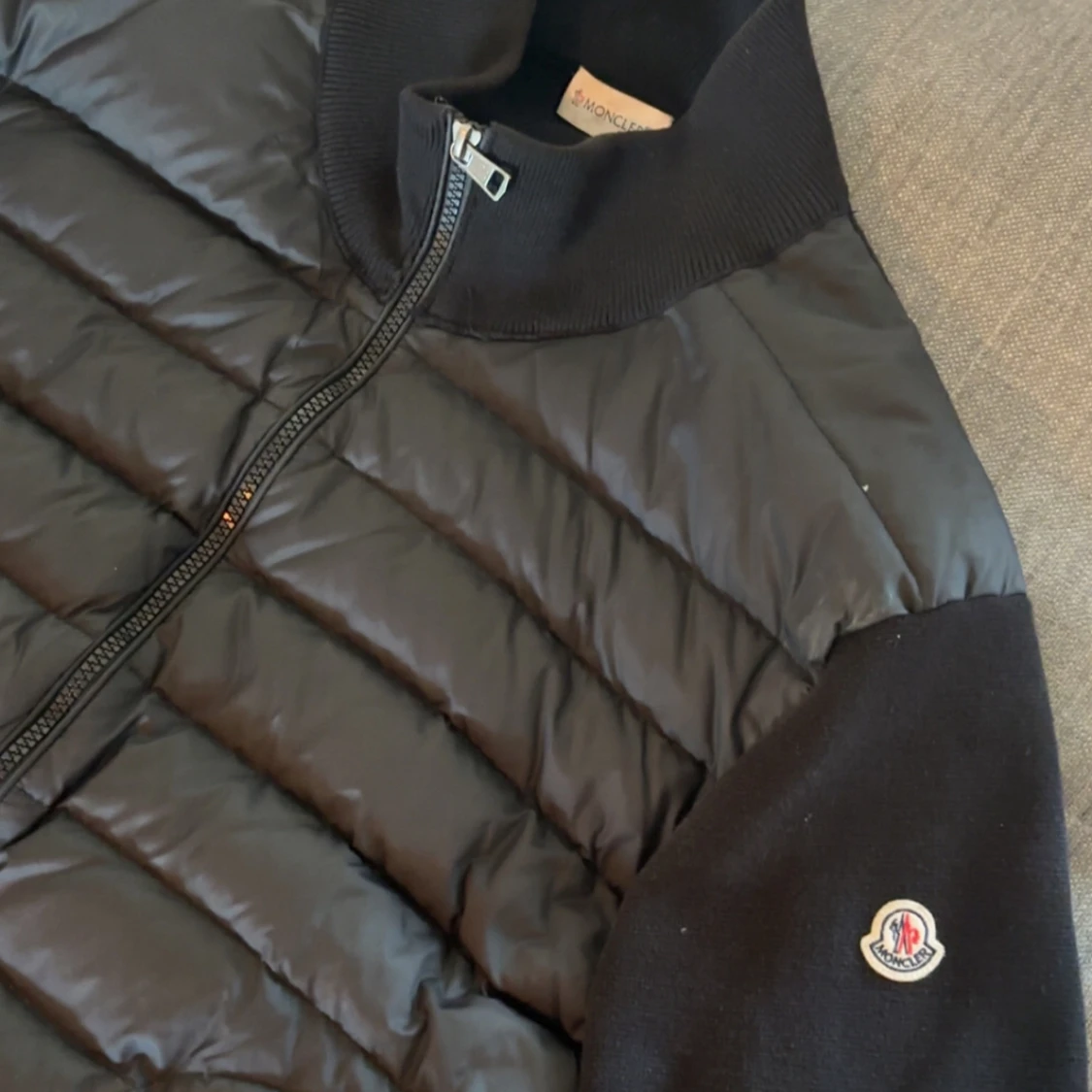 Säljer denna as feta cardiganen från Moncler, cardiganen är använd men fortfarande i väldig bra skick, ända defekten är att storleks tagen är avklippt men cardiganen sitter som en L, perfekt nu inför hösten och vintern. Priset är ej hugget i sten 😄😊