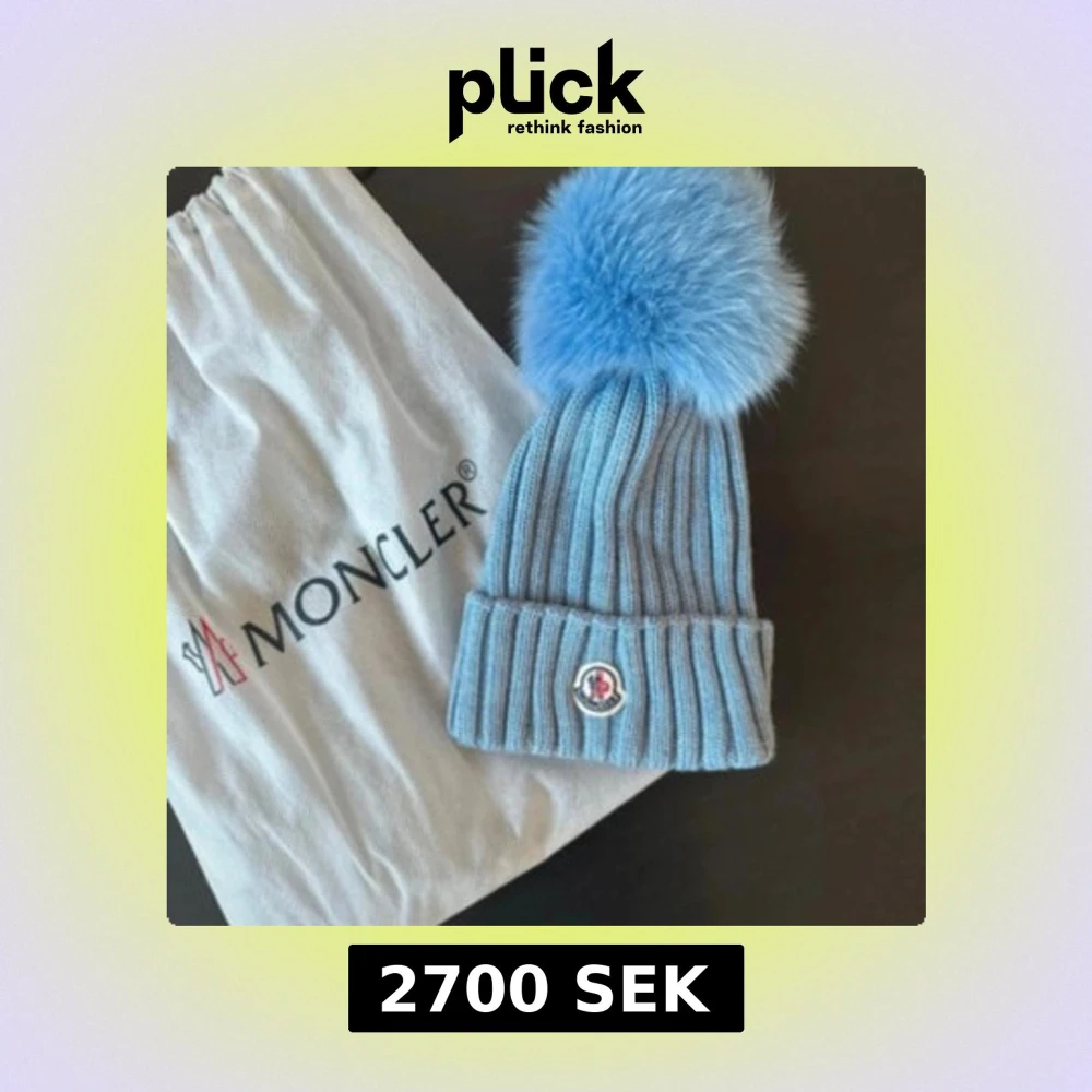 Blå Moncler mössa med pälsboll