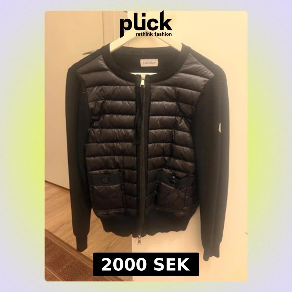 Svart moncler jacka i strl S. Jackan har använts under en vår säsong🫶🏼 Man kan se en liten skada på sida 2 men annars är jackan bra. Pris går att diskutera vid snabb affär💗
