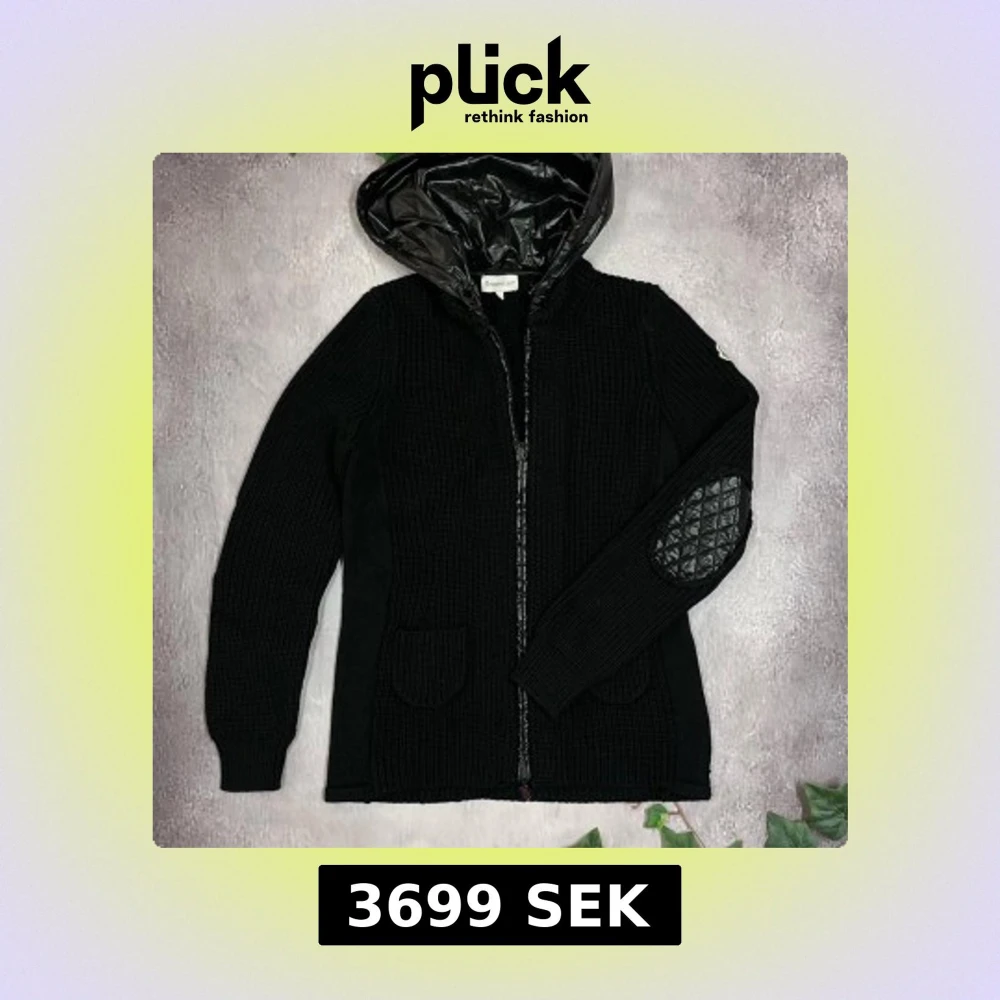 Klassisk och stilren Moncler-kofta med ikoniskt logomärke på ärmen. Perfekt balans mellan lyx och funktion 🎨 Färg: Svart 📏 Storlek:S 📐 Mått:fråga om önskas ♻️ Skick: Bra begagnat skick – sparsamt använt. 🧵 Material: Ullblandning med quiltade detaljer i nylon (huva och armbågslappar). ‼️ Skickas dagen efter köpet genomförs!
