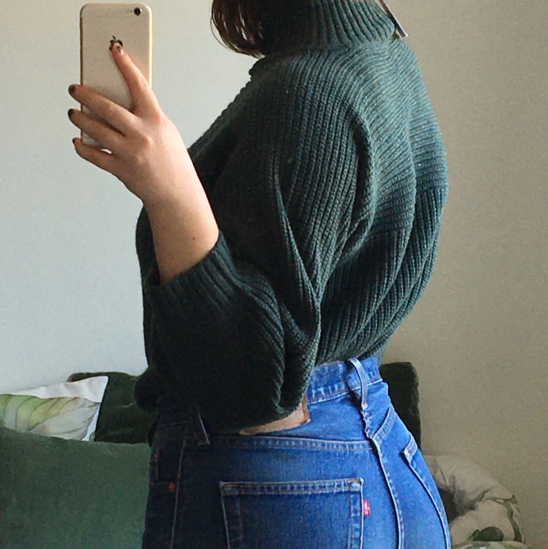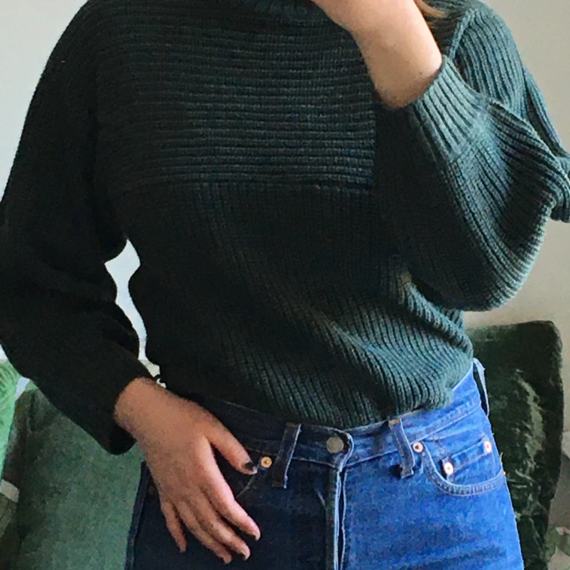 Säljer denna stickade tröja! Den är mörkgrön med ett coolt stickat mönster och är inte stickig! Originalpriset ligger runt 250kr! Har aldrig använts (prislappen är kvar). Säljer för att den är för liten:( Frakt ingår ej💕