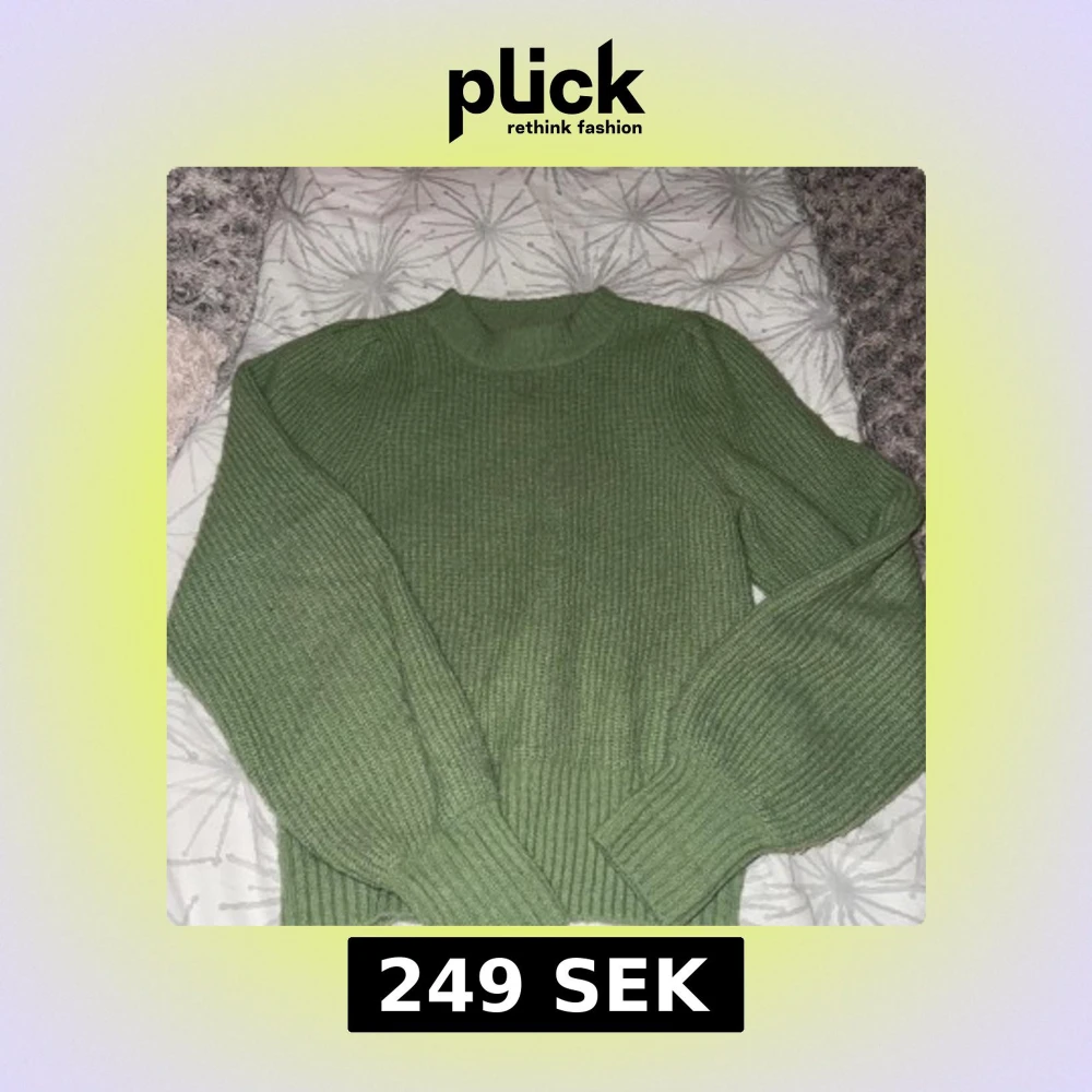 Säljer en grön stickad tröja från Monki i storlek XS. Tröjan har ribbad struktur, rund hals och långa ärmar med lätt puff vid axlarna. Perfekt för dig som gillar mjuka och mysiga plagg med lite volym i ärmarna.