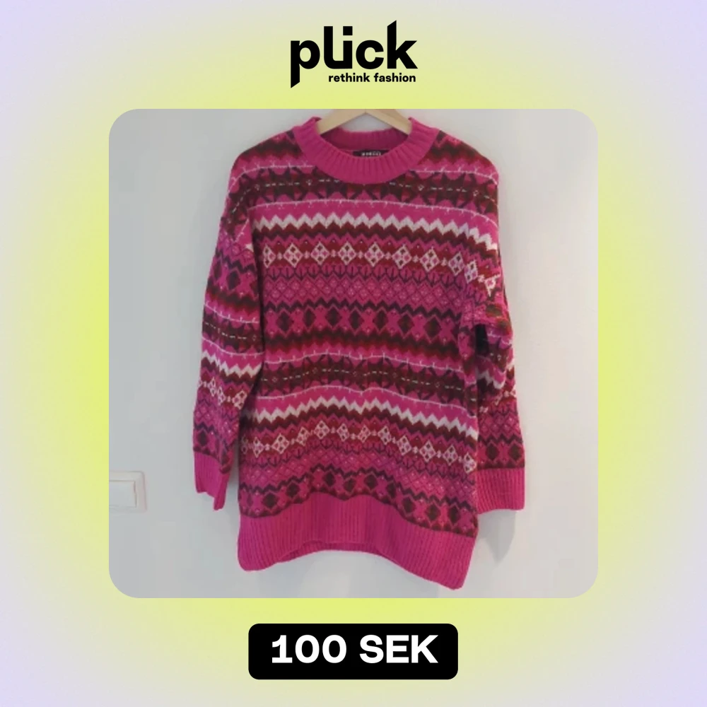 Säljer en superfin och färgglad stickad tröja från DeFacto i storlek M. Tröjan har ett härligt mönster i rosa, rött och vitt som verkligen sticker ut. Den är perfekt för både höst och vinter med sina långa ärmar och mysiga material. Passar perfekt för att hålla sig varm och stilren under kyliga dagar!