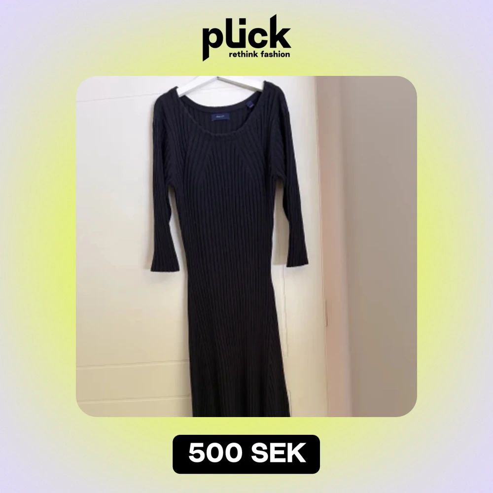 Helt oanvänd Gant klänning som är färgen marinblå och finstickad till lite över knäna. Armarna är 3 kvarts. Nypris mellan 1200-1900kr