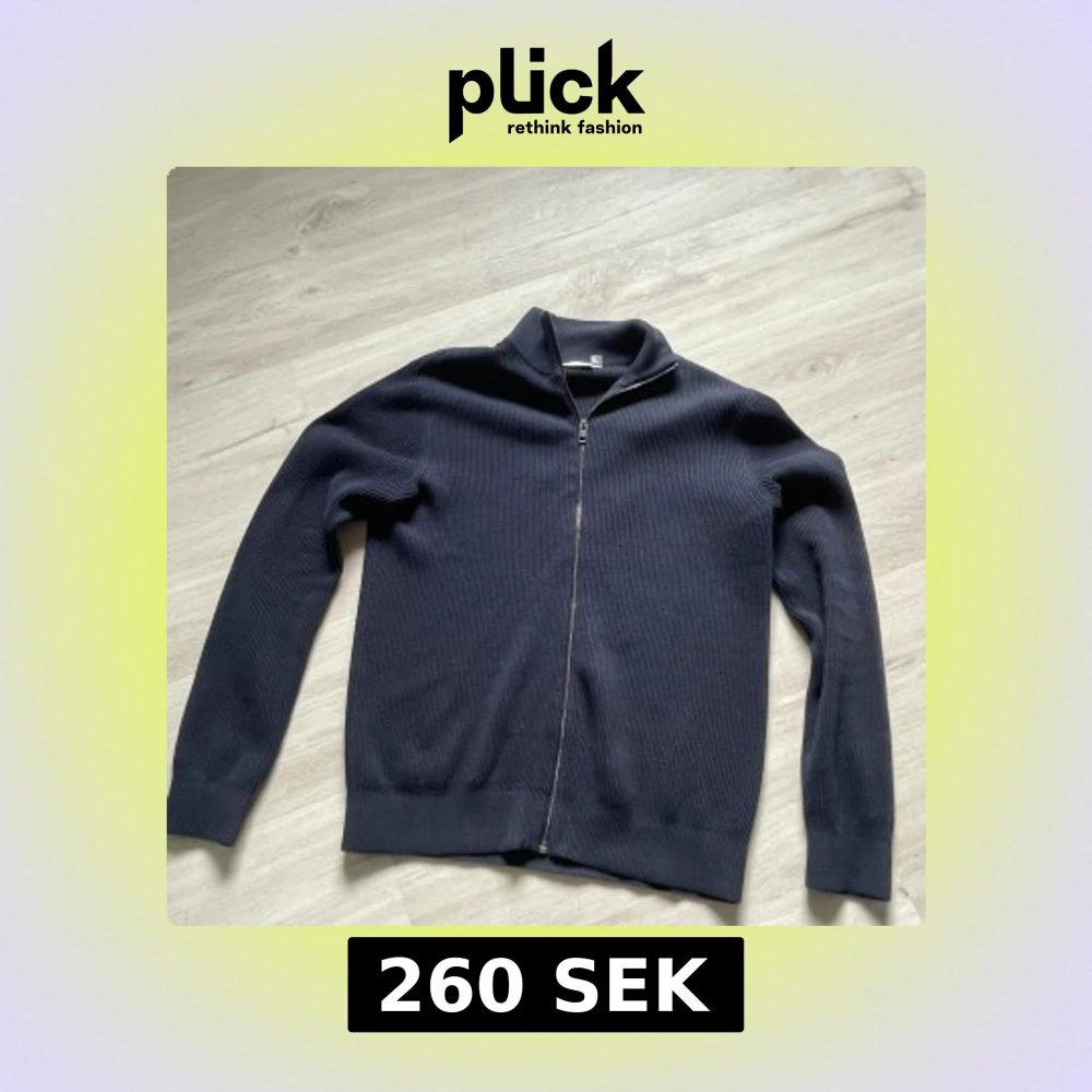 Mörk, stilren stickad kofta från Kappahl i storlek S. Koftan har hel dragkedja framtill, ribbade muddar och hög krage. Perfekt för lager-på-lager och enkel att matcha med olika outfits.