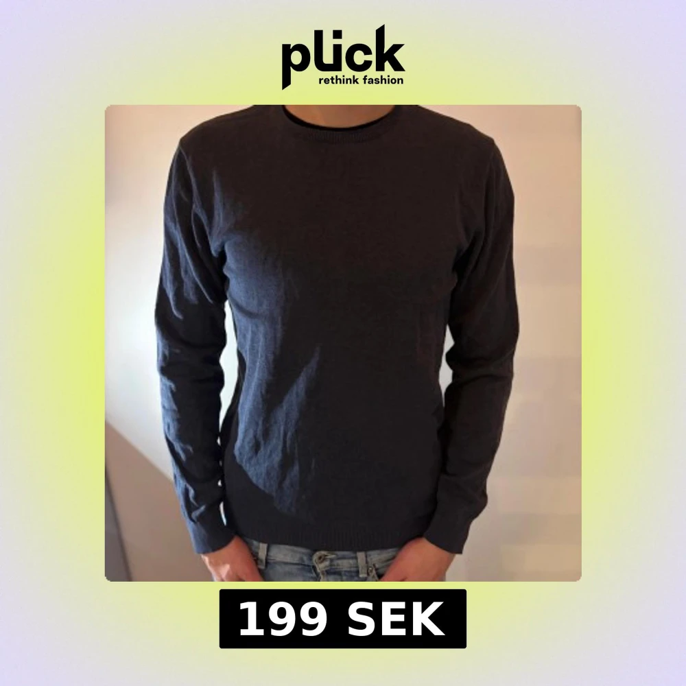 En stilren mörkblå stickad tröja från Bläck i storlek S. Tröjan har rund halsringning, ribbade muddar och är långärmad. Perfekt för lager-på-lager och enkel att matcha med jeans.