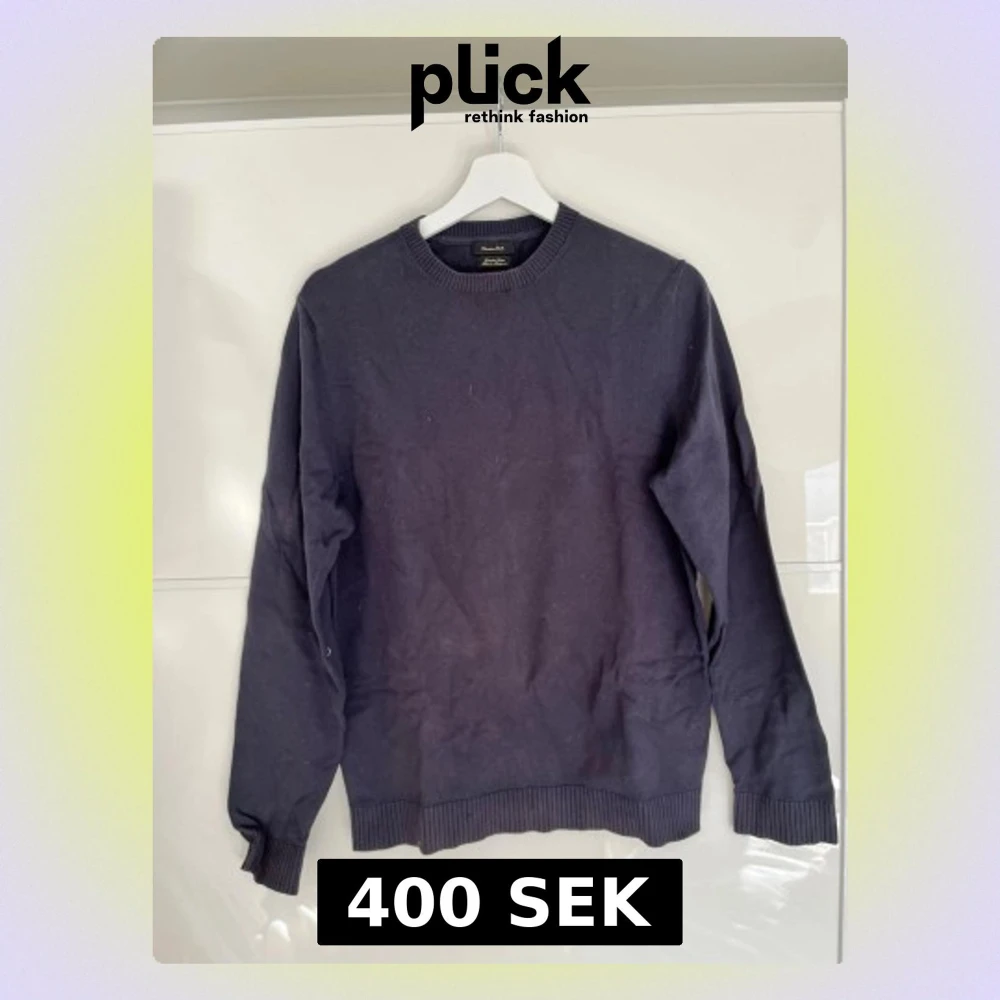 Klassisk mörkblå stickad tröja från Massimo Dutti i exklusiv bomull. Tröjan har rund halsringning, ribbade muddar och en enkel, stilren design som passar till det mesta. Perfekt för dig som gillar en clean och tidlös look.