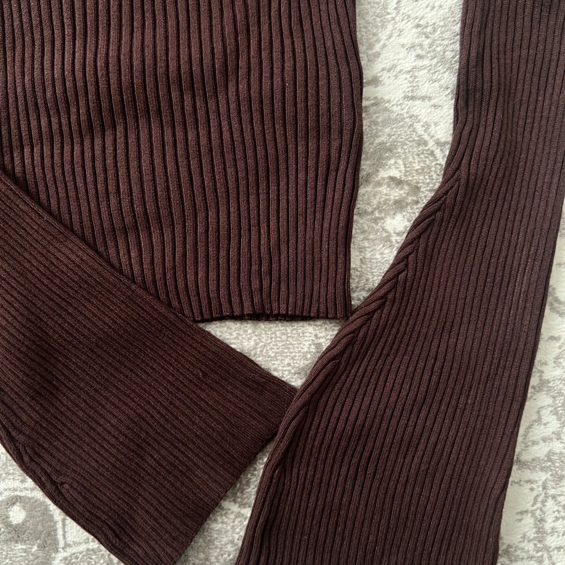 Mörkbrun ribbad långärmad topp
