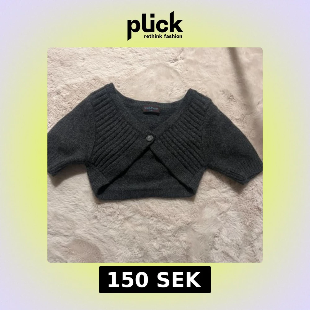 Säljer en stilren mörkgrå bolerotopp från Stella Forest. Den är stickad med ribbade detaljer och har en knapp framtill. Perfekt för att lägga till en extra touch till din outfit. Vet inte vilken stl men är som en s!