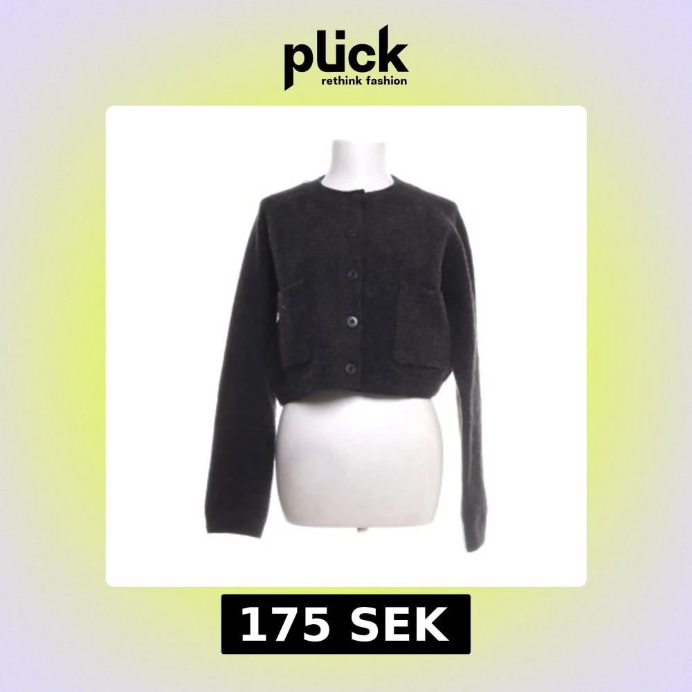 Mysig mörkgrå croppad kofta från Zara med stora knappar framtill och två fickor. Koftan har lång ärm och är stickad i ett mjukt material som passar perfekt till höst och vinter. Enkel och stilren design som är lätt att matcha.