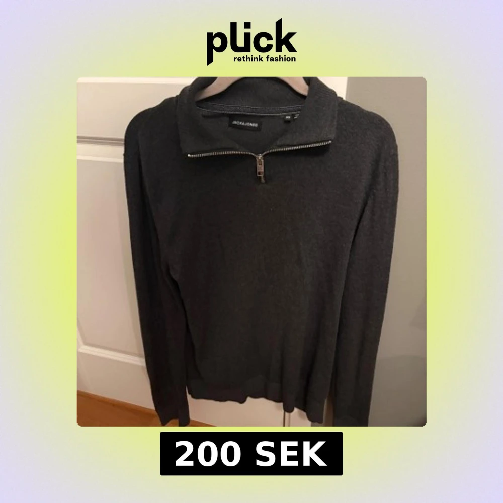 Mörkgrå långärmad tröja från Jack & Jones med snygg half zip-dragkedja i halsen. Tröjan har en klassisk, lite högre krage och är tillverkad i stickat material som passar perfekt till allt. Enkel och stilren design som funkar till det mesta. Köpt för 500kr och är nästan alldrig använd