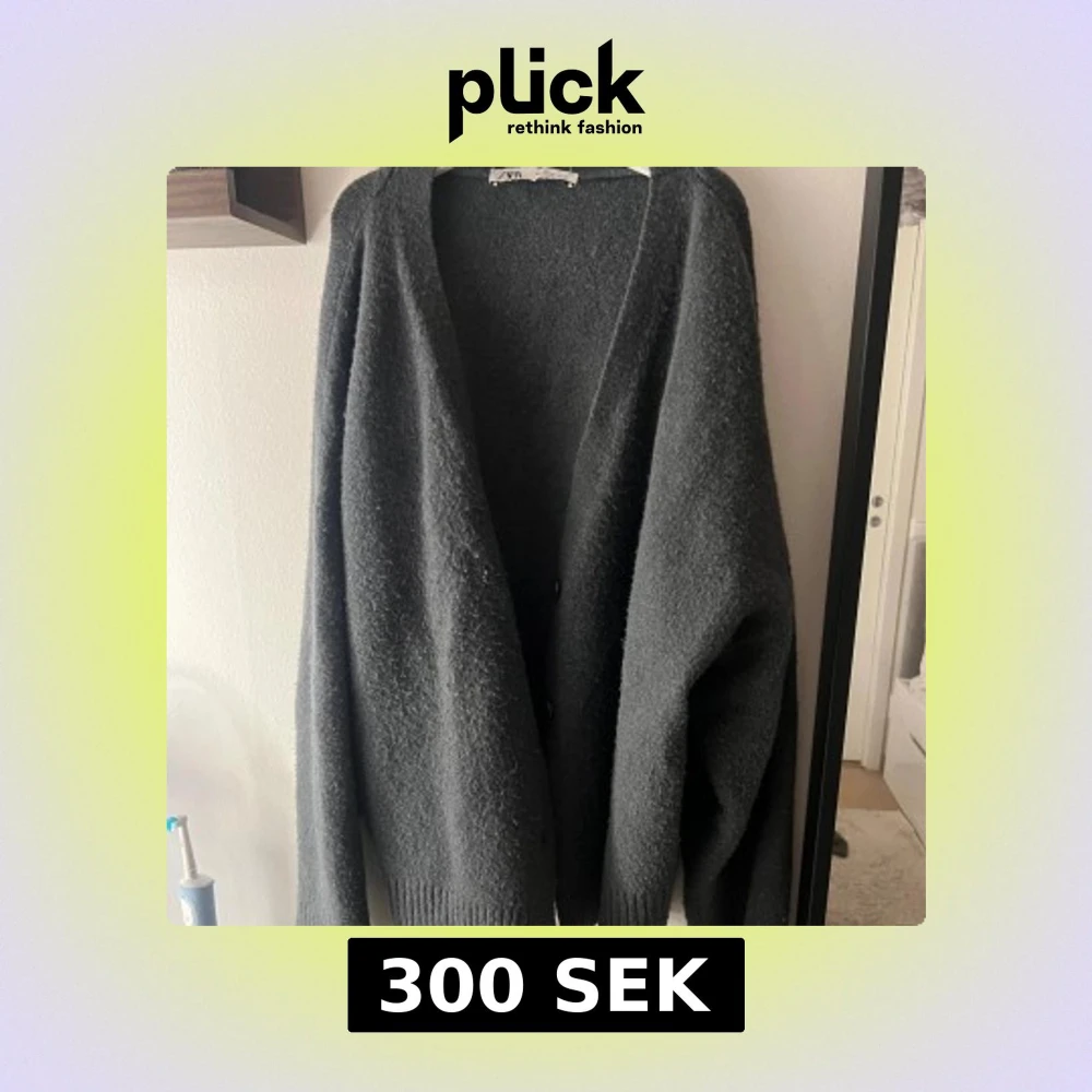 Mysig och oversized mörkgrå kofta från Zara med lång ärm och ribbade muddar. Koftan har en enkel design utan synliga knappar och är tillverkad i ett mjukt, stickat material som känns skönt mot huden. Perfekt för lager-på-lager under kyliga dagar.