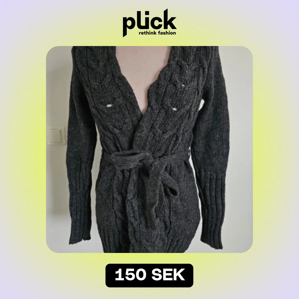 Säljer en supermysig mörkgrå stickad kofta från H&M. Den har ett snyggt flätmönster och ett bälte i midjan för en fin passform. Perfekt för höst och vinter! Koftan har långa ärmar och är i storlek XS. Perfekt att mysa i under kyliga dagar.