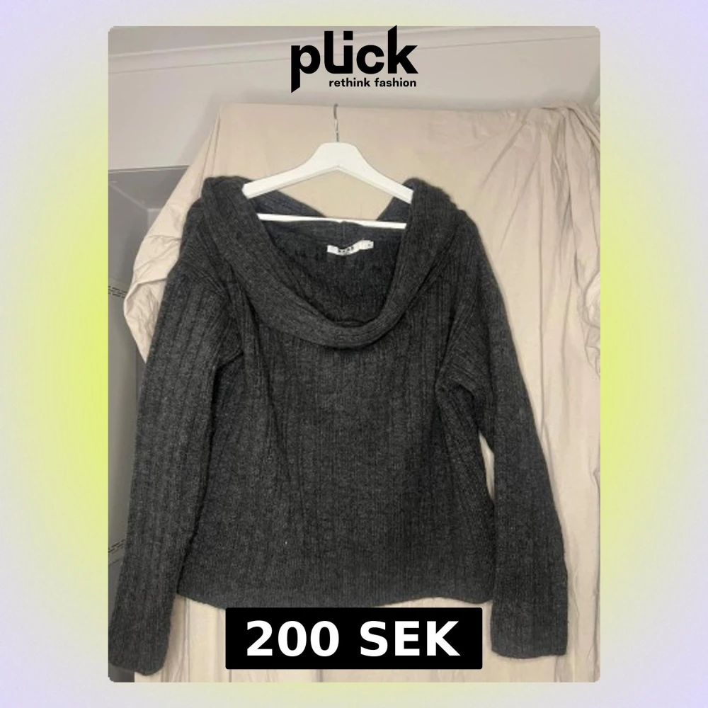 Mysig mörkgrå stickad off-shoulder från NA-KD i storlek M. Tröjan har ribbad struktur som ger en cool vibe. Perfekt för kyliga dagar och enkel att styla med jeans eller kjol. Långärmad och loose fit för extra komfort.
