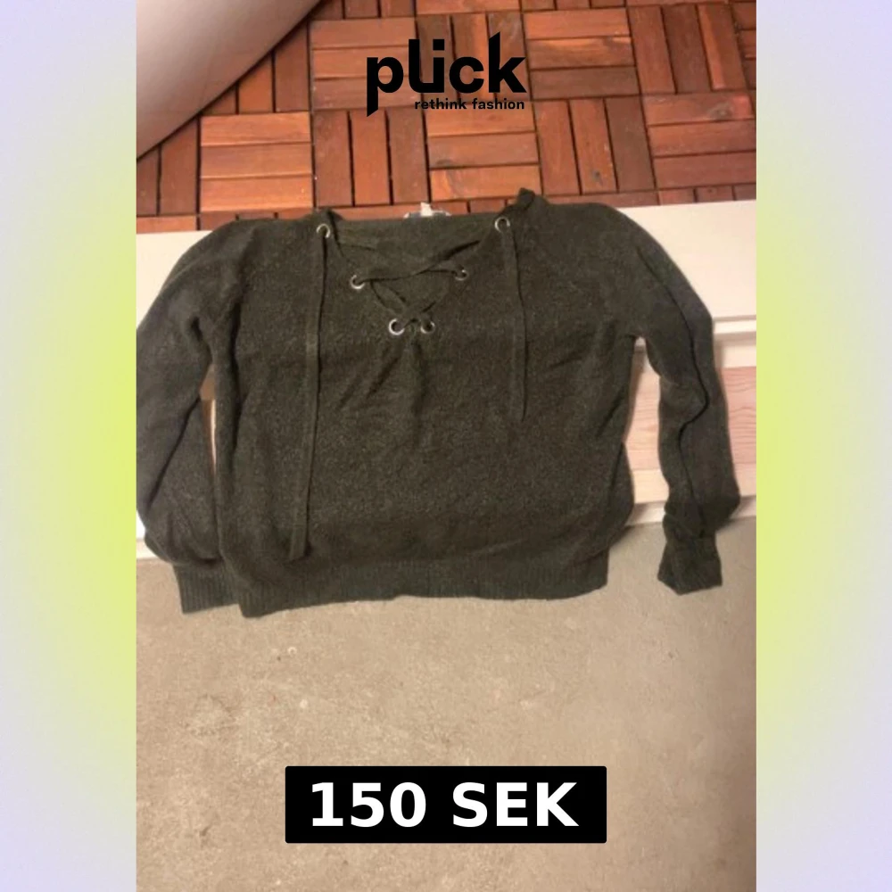 Mysig mörkgrå stickad tröja från Clockhouse i storlek M. Tröjan har långa ärmar och snygg snörning framtill med metallöljetter. Perfekt för dig som gillar en chill och trendig look med lite extra detalj vid halsen.