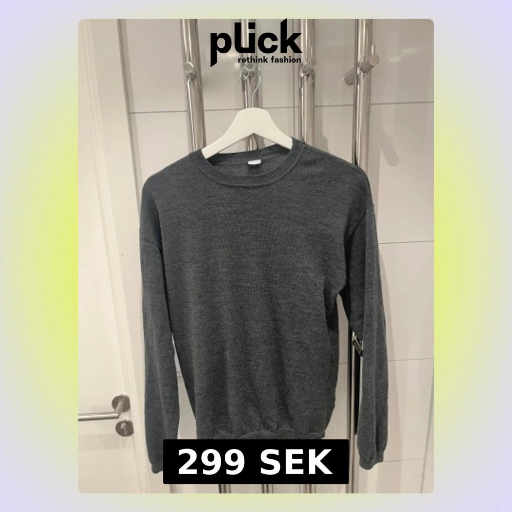 En enkel och stilren mörkgrå stickad tröja med rund hals och långa ärmar. Tröjan har ribbade muddar vid hals, ärmslut och nederkant. Perfekt för dig som gillar en clean look och vill ha något mjukt och bekvämt. Den är i storlek s och är i 100% merinoull