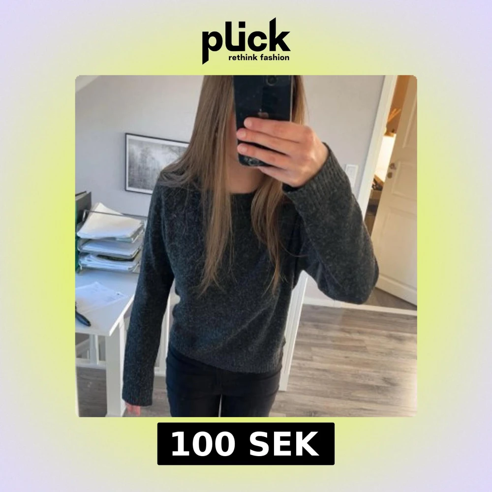 Mysig mörkgrå stickad tröja med rund halsringning och långa ärmar. Tröjan har en klassisk passform och ribbade muddar vid ärmslut och nederkant.