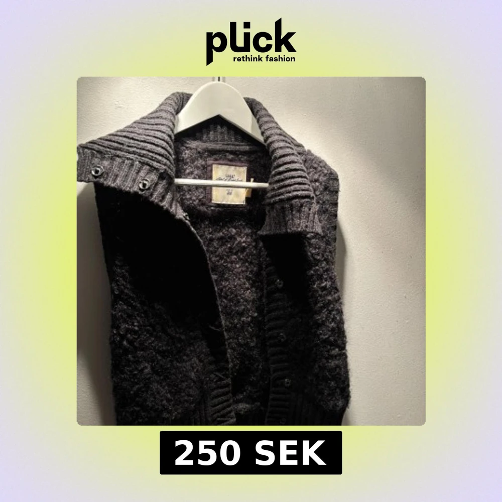 Mörkgrå väst med grov struktur och bred ribbad krage. Västen har knappar framtill och är tillverkad i ett mjukt, ulligt material som ger en chunky känsla. Perfekt för lager-på-lager och chill stil. 62% ull och 24% polyamid