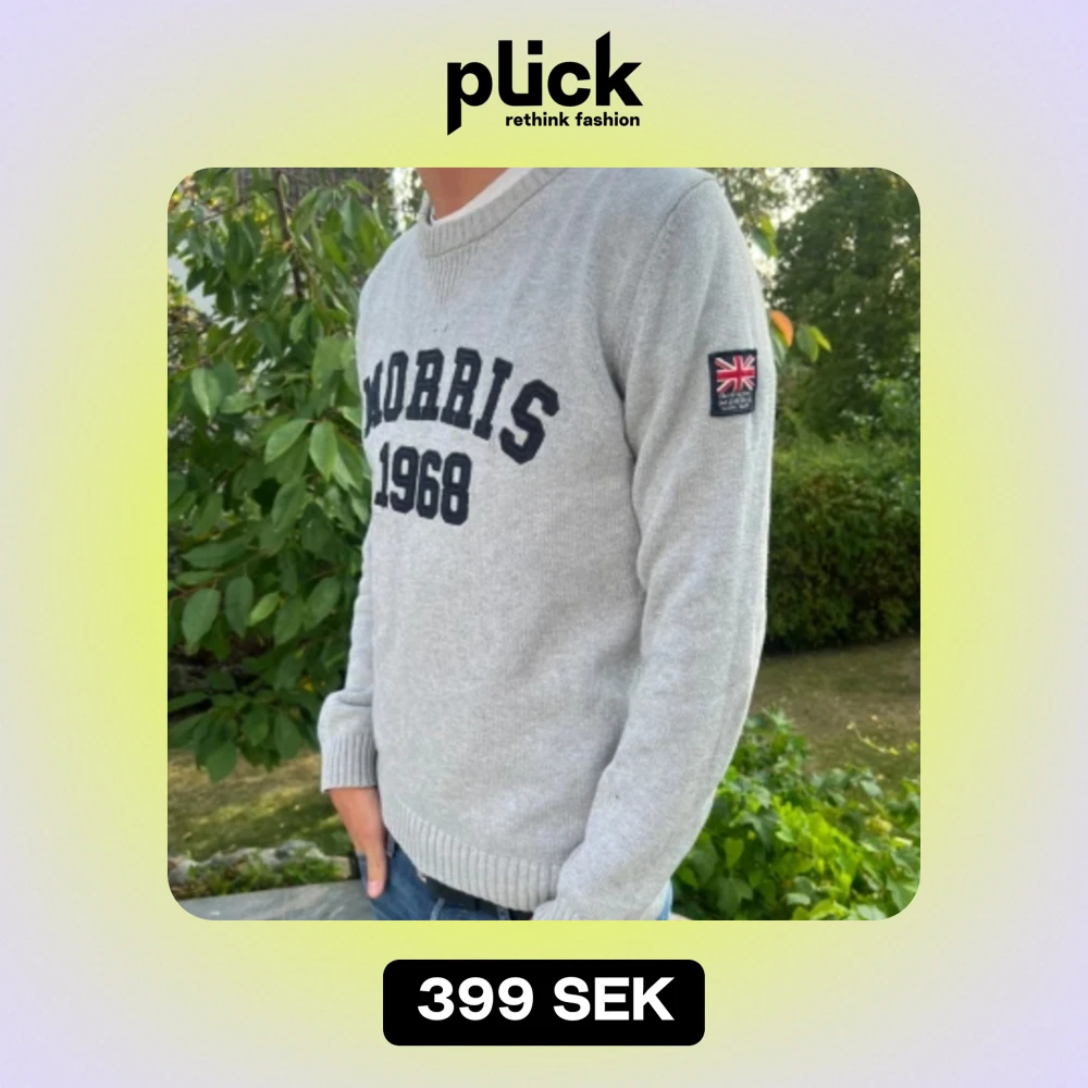 Sjukt fet stickad grå Morris tröja med ett mörkt tryck på framsidan och en mindre märke högt upp på ena armen. Skicket är toppen och nypris ligger på över 1000kr! Tveka inte på att höra av er!🤩
