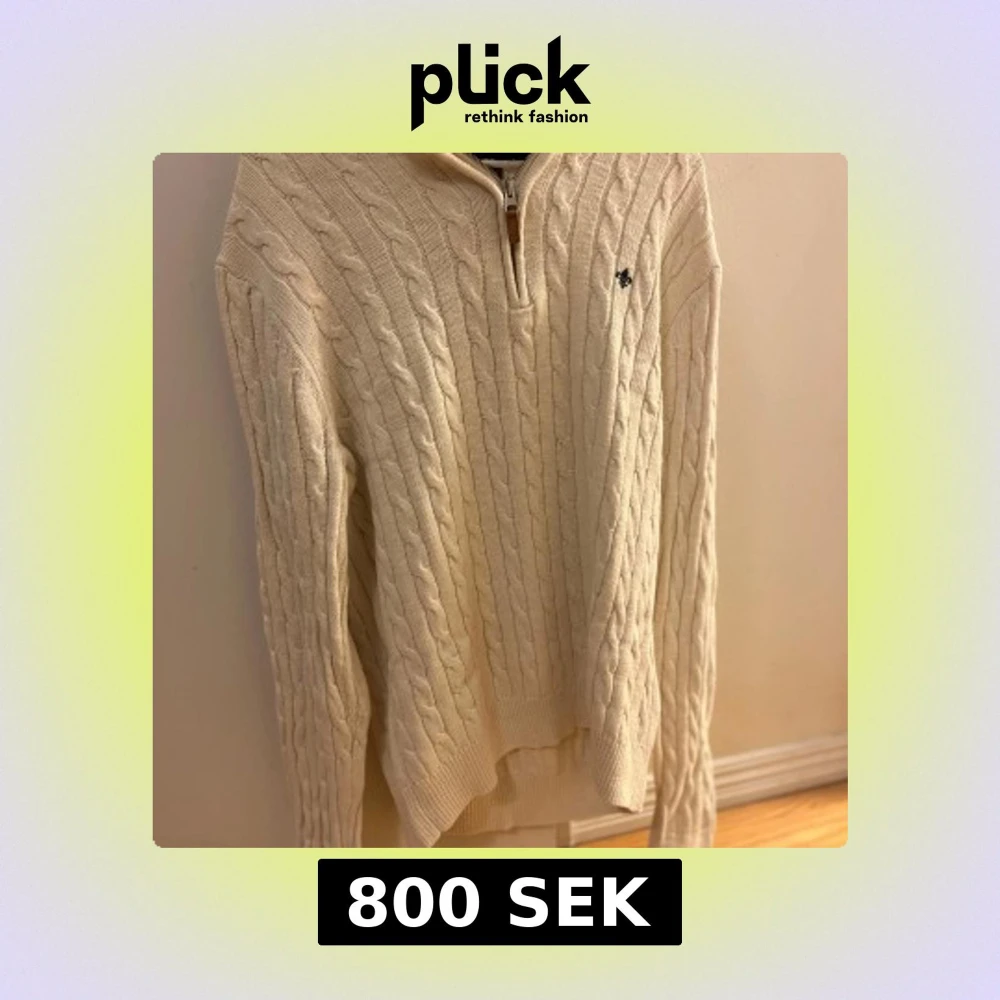 Snygg Cardigan från Morris med halv dragkedja och liten broderad logga på bröstet. Tröjan har lång ärm, ribbade muddar och klassisk kabelmönster. Pris kan diskuteras 😃
