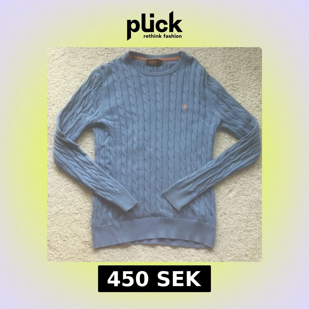 Snygg blå stickad tröja från Morris. Den är knappt använd och är i väldigt bra skick.