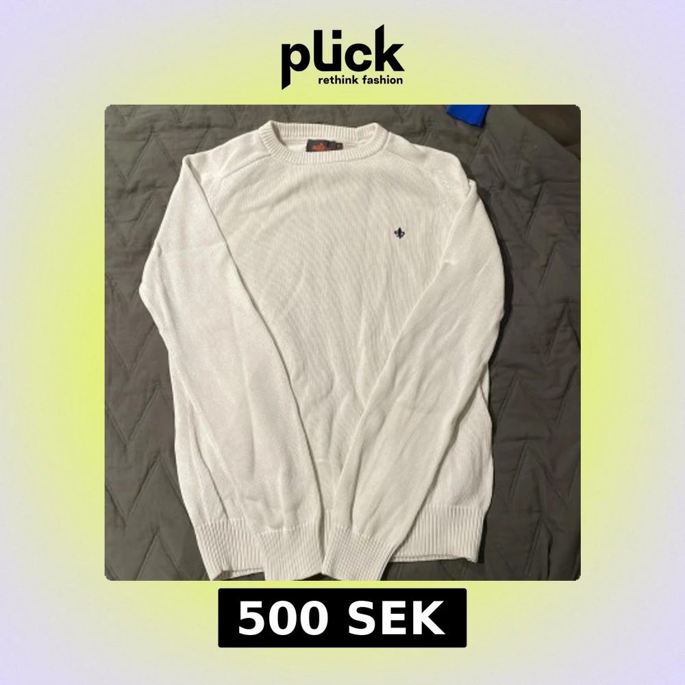 Snygg vit stickad tröja från Morris i storlek XS. Tröjan har rund hals, ribbade muddar och ett diskret Morris-emblem broderat på bröstet. Perfekt för dig som gillar klassisk och clean stil med en touch av preppy. Ny pris ca 1300