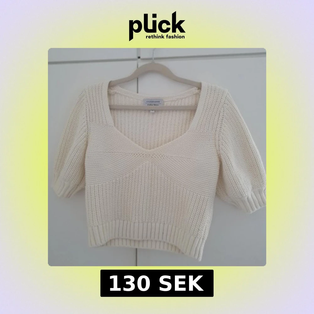 Krämvit stickad topp från Los Angeles Atelier med v-ringning. Snygg ribbad kant nertill och vid ärmslut. Knappt använd och är i ett bra skick.
